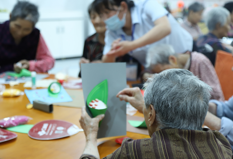 工業(yè)熊志愿者們精神飽滿,帶著真誠的微笑,全身心投入本次志愿服務活動。當天上午,青年志愿者與老人一起做手工粽子畫,老人們一邊發(fā)揮想象力捏著各種形狀的粽餡,一邊和志愿者閑聊。