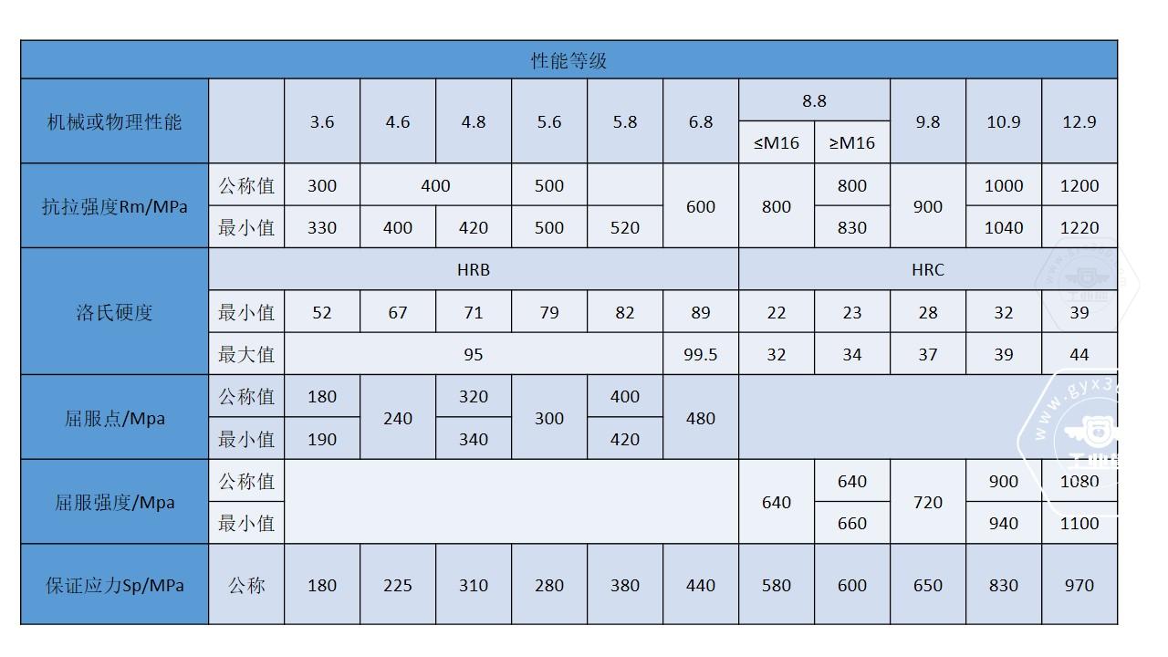 3、螺栓材質的公稱屈服強度達 400X0.6=240MPa級性能等級
