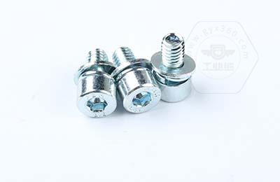 8.8級鍍環(huán)保藍(lán)白鋅 內(nèi)六角不滾花圓柱頭帶平彈墊組合螺釘