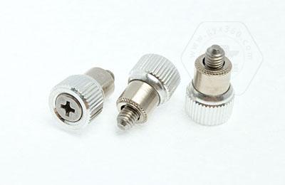 手緊螺釘?shù)膲恒T套具有壓花齒,壓裝于于機(jī)箱或薄鈑孔內(nèi)(注:薄板的鉆孔徑相對(duì)應(yīng)彈簧螺釘?shù)膲糊X徑有一定要求的,形成一個(gè)外露的彈簧螺釘,用手?jǐn)Q另一端(即手?jǐn)Q端).因其里面固定有彈簧,螺釘相對(duì)于薄板的另一端來(lái)回進(jìn)出。