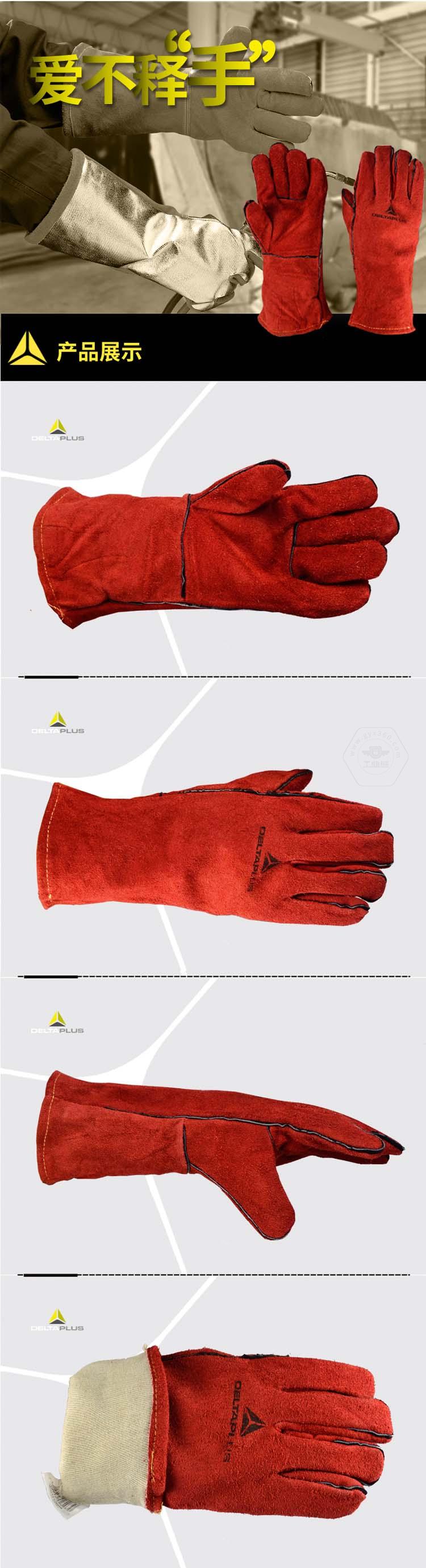 商品名稱:代爾塔 電焊工防護(hù)手套 牛皮焊接勞保 隔熱耐磨防火阻燃 防金屬濺射 205515 紅色 10#