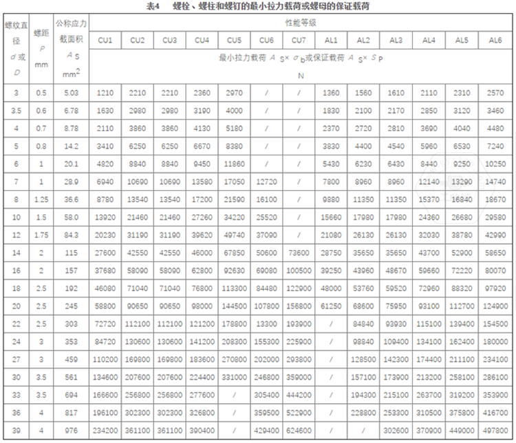 5.2 螺栓、螺柱和螺釘?shù)霓┬±d荷按表4規(guī)定。